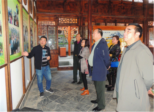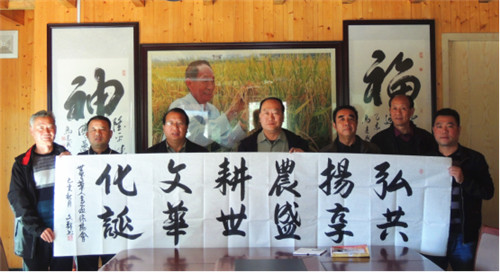 11月16日上午,联合国华人文化产业联合会主席、世界华人书画家协会主席、香港华人杂志社社长兼总编韩昊轩一行在《石川纪事》杂志总编、中国艺术学会副主席王银茂陪同下驱车前往共和国勋章获得者、“杂交水稻之父”袁隆平故居--江西袁家山隆平科普教育基地参观考察。受到江西袁家山科普教育基地总顾问袁隆环、科普教育基地主任程勇军的热情接待。
