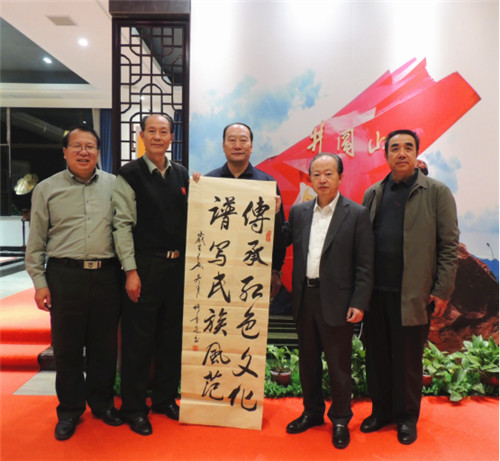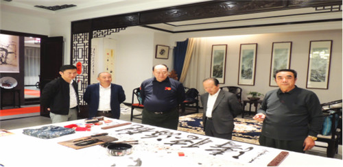 韩昊轩主席一行在江西期间还专程到南昌国光书画院文化交流,受到吴保泉院长的热情接待。中国艺术学会副主席王银茂、世界华人书画家协会副主席杨华、副主席堵童芝挥毫泼墨留下一幅幅精品墨宝。据吴保泉院长介绍该画院以胡耀邦同志的国光名字为院名,主要通过书画形式纪念他的丰功伟绩。