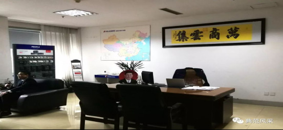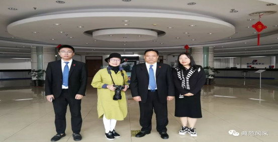 (本社社长蔡青青(左二)、编译吴伊姝(右一)与中国人民电器董事长郑元豹(右二)、宣传策划中心编辑王国静(左一)访谈后合影)
