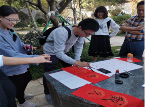 第二项活动是位于白云寺的春联书写大赛。支部成员以“英雄”为主题书写春联,不仅感受到了中华优秀传统文化—汉字的魅力,也用文字表达了对先烈的追怀。