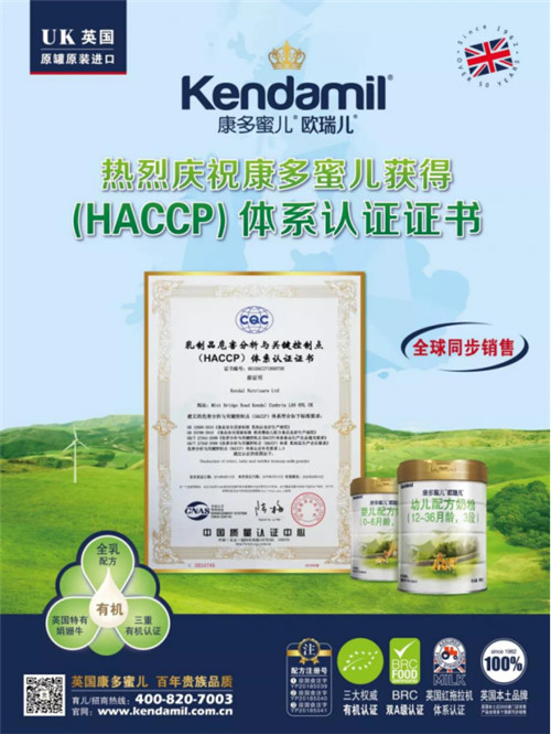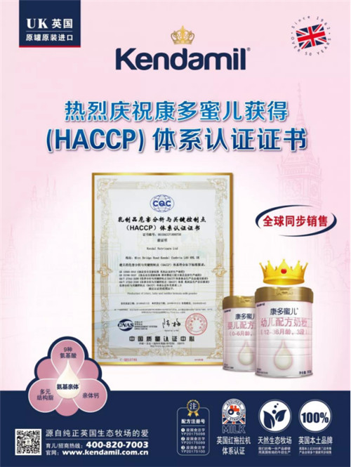 近日,康多蜜儿又荣获“乳制品危害分析与关键控制点(HACCP)体系认证证书”,这为康多蜜儿的营养和健康又加上了一重有力的保证。