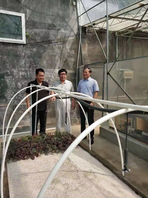 【张国土(右一)和李朝旺总裁考察中华圣树招远中试基地 】