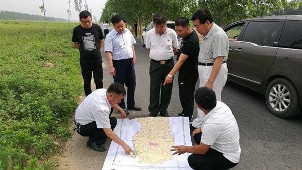 【张国土(左二)和李朝旺总裁考察河南基地】
