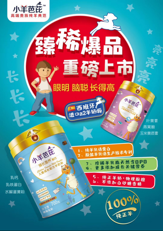 旗下的小羊芭芘两款儿童配方绵羊奶—“臻长盈养和睛聪”自上市以来,更是引爆了市场!