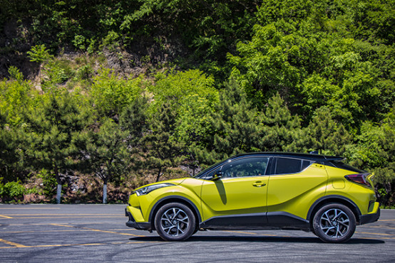 虽然定位于小型SUV,但C-HR的侧面线条,却成为了丰田打破常规的重要组成。比如一反常态的溜背车顶,以及强调光影悬浮感的腰线设计,视觉层面的“修身”效果,搭配双色车身组合让追求个性的用户欲罢不能。