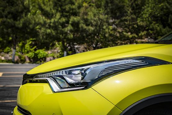 横跨前脸的头灯组狭长且不失棱角,流水式点亮的转向灯与侧面的英文标识,点缀出更具精致感的科技味道,而高配版还选用了LED头灯光源,照明效果更加出众。不仅如此,融入钻石镂空设计元素的水箱格栅,则是C-HR区别于姊妹车的细节之一。