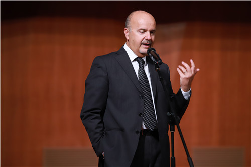 音乐会开始前,意大利著名钢琴家、格罗塞托音乐学院院长、斯克利亚宾国际钢琴大赛创始人Antonio Cristofano(安东尼奥•克里斯托法诺)介绍了赛事的历史以及本届大赛的情况:斯克利亚宾国际钢琴大赛已经成功举办了21届,此前均在意大利举行,今年是第一次走出意大利。本届的参赛选手很多都是在国际著名赛事中获奖的优秀青年钢琴家。Antonio Cristofano(安东尼奥•克里斯托法诺)还表示:今年长江钢琴第一次出现在斯克利亚宾国际钢琴大赛的舞台,这是一个好的开始,希望本届大赛在长江钢琴的支持下圆满成功。