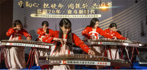此次联谊活动上世界华人书画名家展共展出近60余幅精品书画作品,每幅作品都笔精墨妙、奇妙传神。在展览现场,不少书画爱好者驻足观赏,或品谈交流,或拍照留念,欣赏着眼前这些精美的书画精品。作品以讴歌党、讴歌祖国、讴歌人民为主题,展现“辉煌70年 奋斗新时代”祖国发展辉煌成就和世界华人、瑶盛、丰县广大人民群众团结奋进的良好精神风貌。