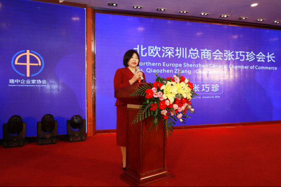 张巧珍在致欢迎辞中表示,去年9月,她非常荣幸接受深圳市委统战部的嘱托,创立北欧深圳总商会并出任会长。在今年1月份,参加深圳市政协第六届六次会议,人大第六届第八次会议的过程中,她感谢深圳市委、市政府领导对海外侨胞的关怀。作为一名老深圳人,她始终为深圳建设先行示范区凝聚智慧力量,推动中瑞双方科技交流与创新合作。