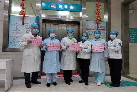 2月8日,急诊科医生护士们为远在武汉洪山方舱医院的急诊金花雷君卓送上元宵祝福!鄂邕遥千里,抗疫共一心!