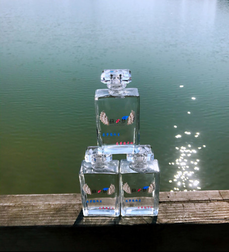 4、酒瓶采用水晶玻璃制作,透明还原其清澈、无污染的酒体
