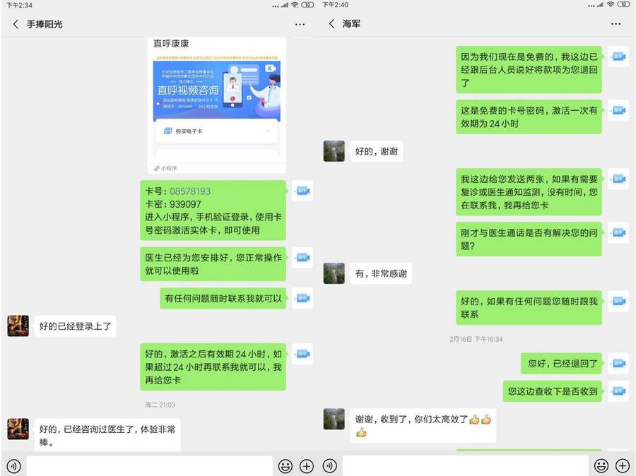 更有一些人通过我的程序去骗钱,用我们免费的程序收人家一次问诊费再把我的程序推给需求者,这种做法使我特别气愤,为了避免在有人借机欺骗需求者,我们将程序改为需要账号密码,所有程序亲力亲为,24小时值班的客服与医生,加客服微信,得到账号密码,登录问诊整个过程1分钟就可以完成,虽然浪费了更多人力及时间,但是这样真心实意帮到了更多真正需要帮助的人。