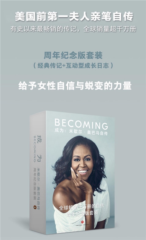 如果说《一个人的朝圣》定制礼盒版是经典畅销书的华丽回归,那么《成为》的定制礼盒+共读服务“套装”,则是咪咕中信书店为女性读者准备的一份“励志书礼”。这本美国前第一夫人米歇尔·奥巴马的亲笔自传全球销量已超千万册,享有2019读者年度“十大影响力好书”之誉。此番与读者见面的周年纪念版套装,包含一本纸质书与一本互动性成长日志,而作为咪咕中信书店用户购书独家福利——《成为》在线共读计划也同步开启招募。资深编辑将与广大书迷一起分享读书心得,为读者解答阅读困惑,在线共读,以书会友,消除读者一个人阅读的寂寞。