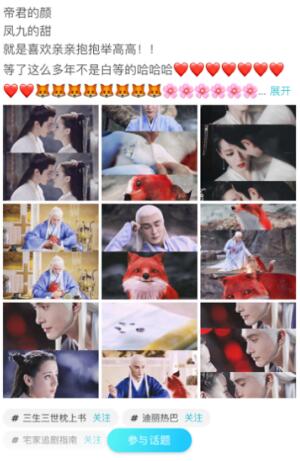 就拿最近流行的《三生三世枕上书》来说,高冷的东华帝君和活泼善良的小狐狸青丘帝姬三世情缘甜虐深刻,整部剧不止情节引人入胜,唯美的古风景象和精致的古风装扮也令人惊艳。在玩吧App(北京默契破冰科技有限公司,以下简称“玩吧”)就有很多年轻人讨论《三生三世枕上书》,看得出来,大家爱惨了这部唯美的古风IP剧。
