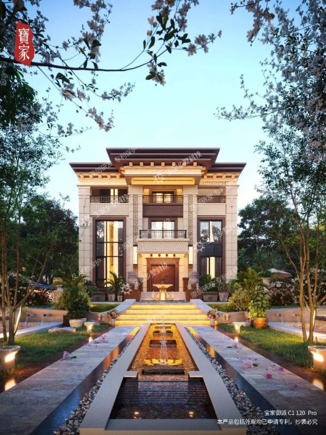 本期分享的宝家C1-120系列新品,建筑风格采用宝家高端系中的经典御派,整体外观豪奢大气 绝对能成当地最靓的宅。