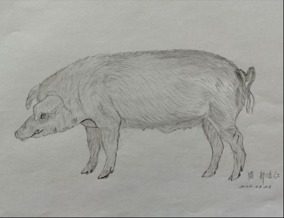 郭延仁《十二生肖》绘画之《猪》