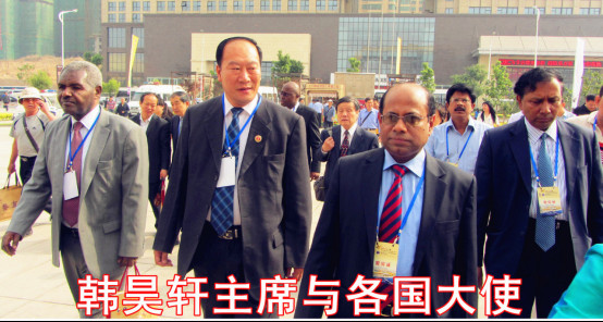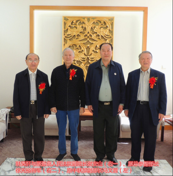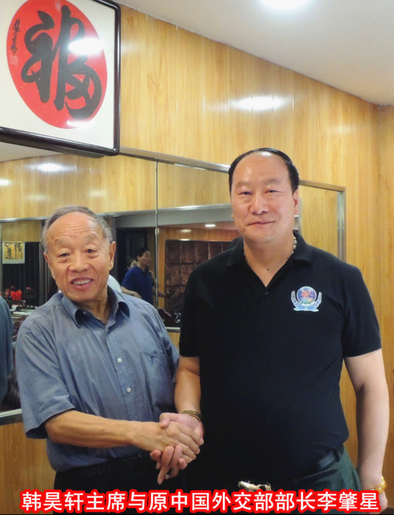 韩昊轩先后受到原国家主席胡锦涛、国务院副总理韩正、原国务院副总理黄菊、原国家侨联主席庄炎林、国务院稽察刘吉部长、原国家文化部常务副部长高占祥、原国家外交部部长李肇星、原中联部副部长马文普、原最高人民法院副院长谢安山、原铁道部副部长国林、原北京军区政委杜铁环上将、原中国人民解放军航空兵司令马炳芝上将、原武警总队徐永清上将、总后勤部政委张文台上将、军事科学院副政治委员兼纪律检查委员会书记冯永生中将、徐根初中将、原兰州军区副司令员董占林中将、杨思禄副司令、原总参谋部徐光裕将军、张家鹏将军、祁荣祥将军、中国人民解放军三军仪仗队大队长程志强、联合国前秘书长安南、泰国民主党主席、原泰国国务院总理阿披实、泰国亲王纪拉空、孟加拉国驻华大使穆哈邁德.阿茲祖.哈克、老挝人民共和国驻华大使宋迪.本库、坦桑尼亚共和国驻华大使菲利普.桑卡、刚果共和国驻华大使达尼埃尔·奥瓦萨、科特迪瓦国驻华参赞安格拉、加蓬共和国文化参赞班布、著名艺术家阎肃、书画泰斗欧阳中石、范曾、刘大为、中国硬笔书法协会名誉主席庞中华、中央电视台副台长赵立凡、著名主持人白岩松、鞠萍、李瑞英、欧阳夏丹、赵忠祥、董浩、老红军王定国、毛泽东女儿李敏、李讷、毛泽东机要秘书张玉凤、朱德总司令儿媳赵力平、陈毅元帅儿子陈昊苏等国家领导、老将军、国外高层、大使和社会知名人士接见、邀请、交流。