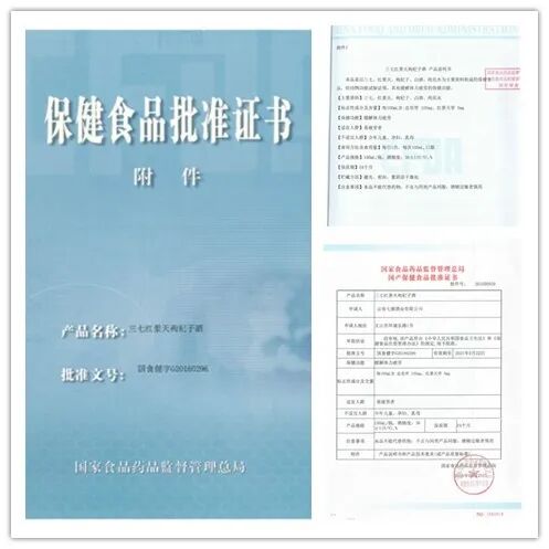 云南七丹药业三七红景天枸杞子保健酒批准证书