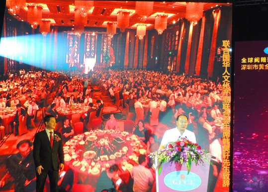 国务院原稽察刘吉部长、联合国华人文化产业联合会主席、世界华人书画家协会主席韩昊轩应全球闽籍珠宝工商总会邀请出席本次大会并讲话。周大生珠宝股份有限公司董事长周宗文当选为全球闽籍珠宝工商总会和深圳市黄金玉石珠宝商会会长。