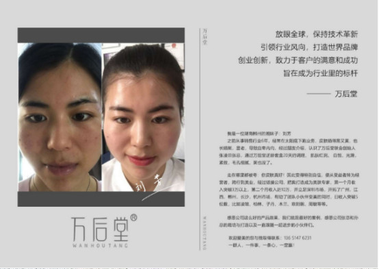 许多来万后堂调理皮肤的客户,都已成为了万后堂创业群体的一员,更有一些客户在进入万后堂后,一周收入达到五位数!之所以能取得这样傲人的成绩,除了必要的专业技术外,也缺不了万后堂全心全意的服务和每一个人的努力,才能见证一个又一个的奇迹!