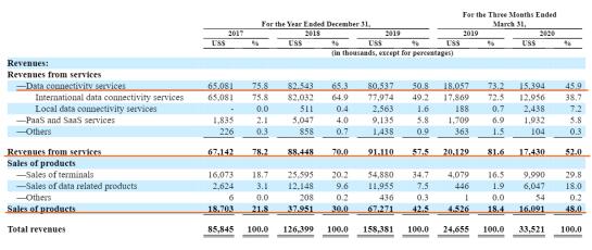 招股书中收入说明,uCloudlink收入主要来自服务和产品销售。