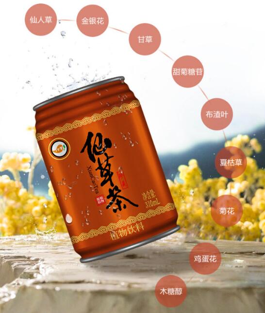仙草茶由仙人草、金银花、甘草、布渣叶、夏枯草、菊花、鸡蛋花、甜菊糖苷、木糖醇共计九种草本植物慢熬2-4小时而成。
