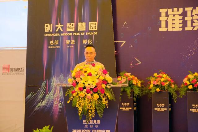 创大智慧园董事长林建祥先生为开园盛典发表讲话,感谢社会各界人士的支持,将尽最大努力促进勒流经济高质量发展!