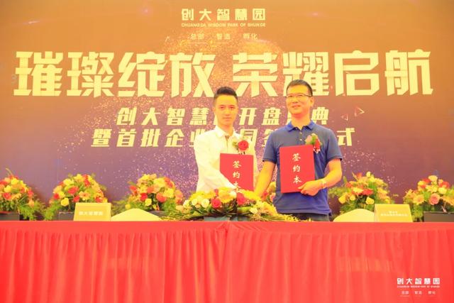 招商中心开放一个月以来,已签约进驻企业23家,现场由创大智慧园总经理林鸿礼先生与5家来自深圳、广州、佛山企业代表进行签约仪式,现场超过300名社会各界人士观礼。
