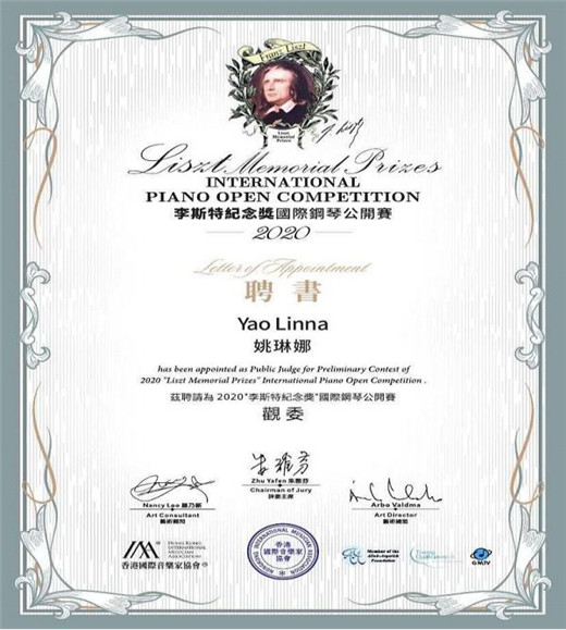 姚琳娜老师已成为2020“李斯特纪念奖”钢琴公开赛全球线上选拔赛观委团的一员。将与来自全球20多个国家和地区的专家评委们一起为选手打分,携手共同推动钢琴教育事业发展。
