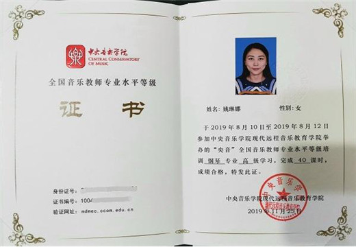 2019年全国钢琴教师岗位能力认证为高级教师;