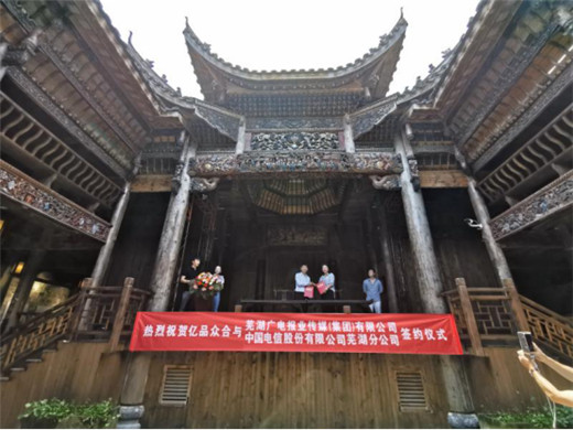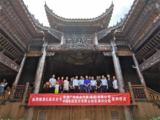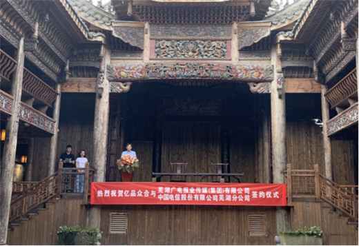 2020年6月30日,芜湖亿品众合文化影视产业有限公司、芜湖市广电报业传媒(集团)有限公司、中国电信股份有限公司芜湖分公司在芜湖中江书院举行了三方战略合作签约仪式曁新闻发布会。亿品众合董事长陈伟忠、芜湖传媒中心(集团)主任柯南、中国电信芜湖分公司总经理谷开鸿、新华联鸠兹古镇董事长李茂海及芜湖当地其他知名企业代表纷纷出席,芜湖市宣传部、鸠江区区委、官陡街道党工委等政府相关领导莅临指导,共同探讨影视传媒行业在芜湖的创新与发展,携手打造芜湖5G电影城市的美好蓝图。