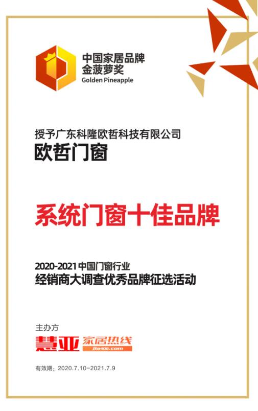 而欧哲的经营理念和服务品质,也得到了行业权威认证。获评《系统门窗十佳品牌》荣誉,就是欧哲先进性的认证。