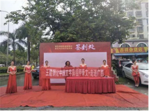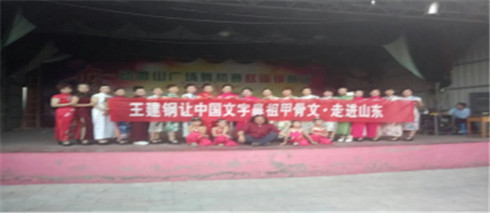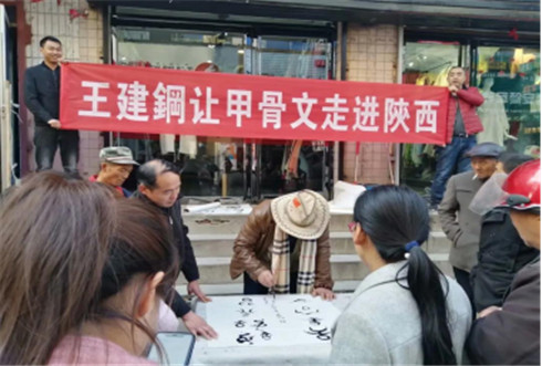 从转辗数几十个省市进行“王建钢让中国文字鼻祖甲骨文--走遍中国”到把甲骨文宣导到庙会,社区,农村党支部,走近军营,学校,中小学堂,老年大学,对甲骨文古文字进行有效的传承,从参加“助力社区乘凉晚会”到“江苏卫视少儿模特大赛”现场泼墨,从参与助残大型公益活动到出席“中国艺术家书画巡展闭幕式”,让中国文字鼻祖甲骨文走出国门,多次参展各层的书画展!