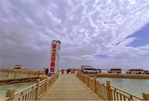 茶卡天空壹号景区位于茶卡盐湖东部,面积14.19平方公里,海拔3059米。景区分为“一轴两区三板块”。景区的核心景点和大部分的游乐项目,都集中在景区东部。