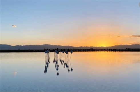 茶卡盐湖,别称茶卡或达布逊淖尔,是位于青海省海西蒙古族藏族自治州乌兰县茶卡镇的天然结晶盐湖,是柴达木盆地四大盐湖之一。“茶卡”是藏语,意即盐池, 也就是青海的盐;“达布逊淖尔”是蒙古语,也是盐湖之意。茶卡盐湖与塔尔寺、青海湖、孟达天池齐名,是“青海四大景”之一,被旅行者们称为中国“天空之镜”,被国家旅游地理杂志评为“人一生必去的55个地方”之一。