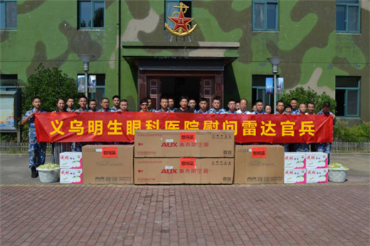 医院卜董事长因为一次偶然的机会,得知该部队食堂一直未安装空调,一到炎热的夏季,官兵们就需要在闷热的环境里就餐。为了能给官民们营造一个更舒适的就餐环境,义乌明生眼科医院就借8月的节日庆贺之际,送上了两台空调。