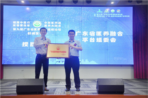 会上,原广东省政协副主席、广东省医学会会长姚志彬为广东省养老服务产业促进会会长、广东省医养融合平台发起人李振清授予“广东省医养融合平台组委会”牌匾,对广东省医养融合平台的发展定位给予充分肯定并寄予厚望,为广东省医养融合平台组委会的发展奠定重要基础。