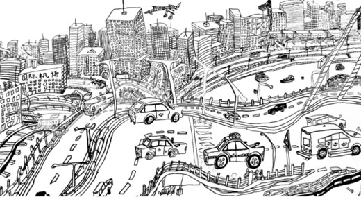 9岁的朱凌立,不打草稿,一支马克笔就能画出一座城市交通。