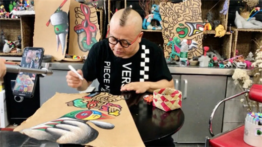 耳朵人田太权直播中指导孩子画画