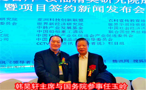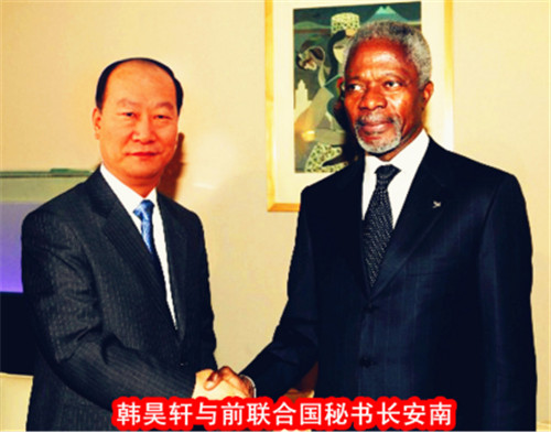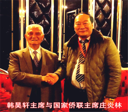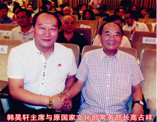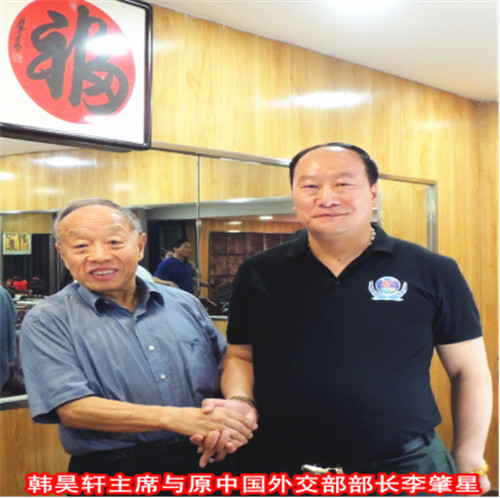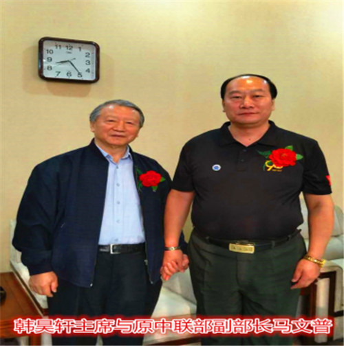 在《创业中国》杂志社社长欧阳子卿的引见下,与8月8号在徐州《华人》杂志社华东分社有幸认识了香港华人杂志社总社社长、世界华人书画家协会主席、联合国华人文化产业联合会主席韩昊轩先生,当走进办公室扑面而来的是满墙五彩缤纷的照片和琳琅满目的名人书画及荣誉证书。在和韩昊轩主席认识一瞬间既被他的人格魅力所吸引,身材魁梧高大的韩主席,他身上既挟带着东北人的干练又释放着山东人的儒雅,一团和气而贴心语气让人融化在他的热情里,通过交流让我感觉到韩昊轩主席是一个对自己负责,对他人尽责,有把经营天下视为己责,勇于担当,富有挑战,敢于守正,创新发展的智者。