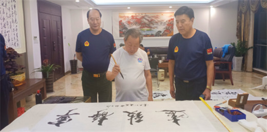 现场,世界华人书画家协会副主席谢茂森先生、江苏分会副主席王传和先生挥毫泼墨为浩腾电力书写一幅幅精品墨宝。