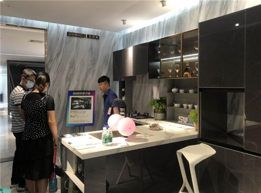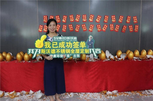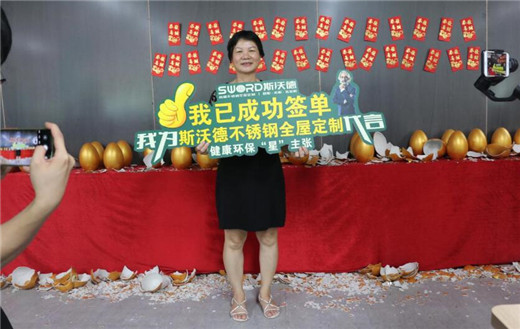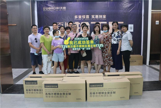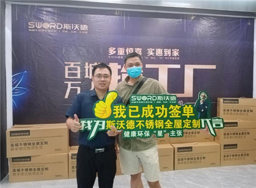 此外,活动期间,SWORD斯沃德总裁进行了现场惊喜放价,全场产品低至5.5折,还额外赠送水盆和龙头。现场人气爆棚,众多客户排队买单。预约报名的客户也获得了资深设计师免费测量、设计的机会,下单客户订金直接增值翻倍,购买斯沃德产品满额的客户还获赠了方太厨房三件套、不锈钢浴室柜、不锈钢阳台柜等产品,实付2000元定金的客户还参与了砸金蛋活动,最高奖获得了“厂购专享特权”。