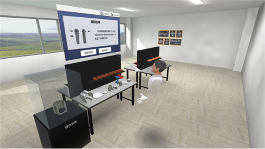 《机械臂安装指引》是一款面向生产制造领域的流程性培训模板,包括理论培训与操作培训两部分,理论培训用于强化记忆该流程的专业知识,操作培训用于强化记忆该流程的安装步骤。在操作培训中,提供了零部件取放时的重力错觉,并着重还原了电钻、六角扳手、出厂划线笔等工具的交互体验,以此强化受训人员的沉浸感及学习效率,降低企业长期培训成本。