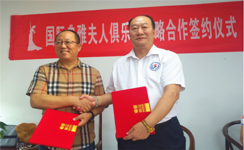 世界华人书画家协会主席韩昊轩与国际典雅夫人大赛中国执委会主席陈伟民在仪式上签约
