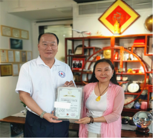国际典雅夫人大赛中国执委会秘书长刘晓燕为中国总决赛运营总监韩和宵颁发证书