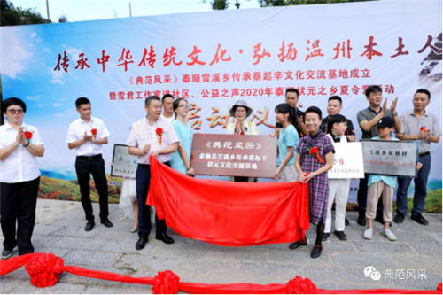 2020年8月22日上午,“风和日丽,祥云起舞”,雪溪乡双桥村在“锣鼓喧天”的喜庆氛围中,成立了《典范风采》泰顺县雪溪乡传承蔡起辛文化交流基地、雪溪乡双桥村弘扬民族文化艺术团。为社会各界关爱中华民族传统文化的学子、各艺术团体搭建了蔡起辛状元文化交流平台。