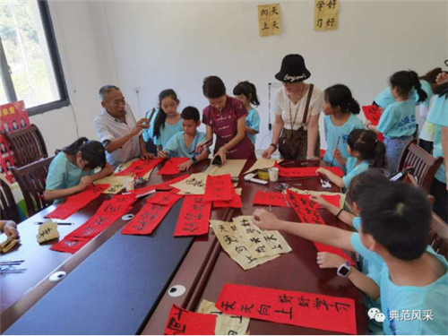 当天下午,还邀请到绣山中学书法小老师。同学们在小老师的指导下一展书法、画画风采。来自温州市区的小朋友在体验乡村农家农耕生活中也是各展神通,还有雪君工作室义工队由双桥村书记蔡家城带领去慰问了双桥村特困户。