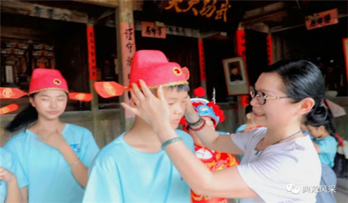 参加本次夏令营活动有:“公益之声”城里31名孩子和刚组建的“雪溪乡双桥村弘扬民族文化艺术团”35名孩子。其中有部分中小学生、部分留守孩子共66名,在《蔡氏宗祠》进行了“佩戴状元帽”的仪式,拉开了为期三天的学习、探索之旅的序幕。