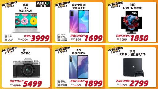 活动期间百脑汇联合全馆品牌商家,挑选出热门优质星品,实施价格大力优惠:惠普155笔记本电脑直线降价1000元;华为多款机型与新品限时百元优惠;索尼PS4 PRO 1TB国行主机降价800元;优派显示器、富士相机......各品类数码商品享超值惊喜价格。此外,发布即掀起全民健身浪潮的爆款游戏《健身环大冒险》,已于今年9月初发售国行版,满减活动期间该游戏更有不同组合优惠活动,任意搭配,拼单更划算!