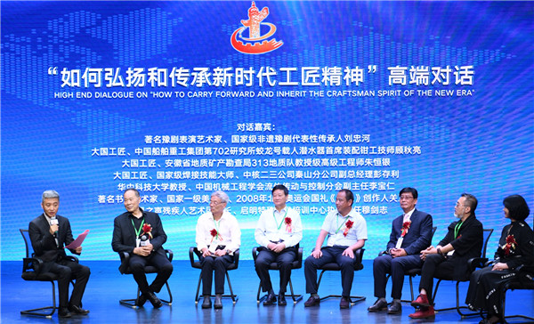 此次论坛以“如何弘扬和传承新时代工匠精神”为主题进行高端“对话”。曲艺名家、主持人周炜与豫剧表演艺术家刘忠河;蛟龙号载人潜水器首席装配钳工技师顾秋亮;安徽省地质矿产勘查局313地质队教授级高级工程师朱恒银;国家级焊接技能大师、中核二三公司秦山分公司副总经理彭存利;华中科技大学教授、流体传动与控制专家李宝仁;国家一级美术师、2008年北京奥运会国礼《国娃》创作人关玉良;北京梦河影视、心灵之声残疾人艺术团团长穆剑志7位嘉宾通过面对面交谈,分享求学求艺经历,及如何追求卓越的创造精神,精益求精的品质精神。